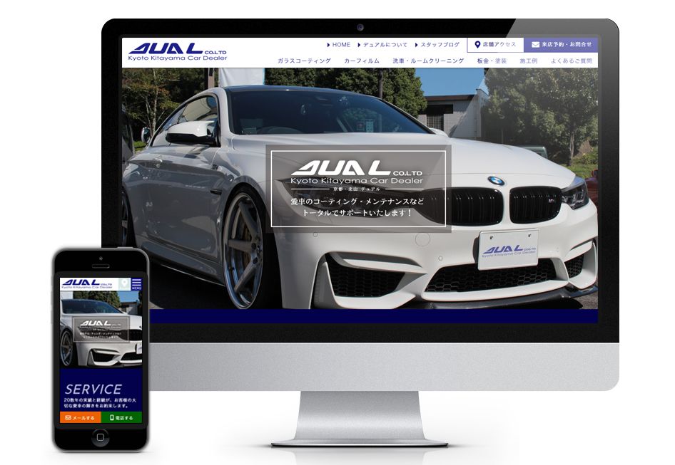 カーコーティング専門店デュアルさんのサイトリニューアル。カーマニアが集まるお店ということで、写真の撮り方・見せ方について色々教わりながらの制作でした!