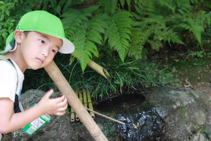 「水琴窟(すいきんくつ)」竹筒の中からキレイな音が聞こえます。