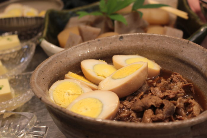 二番だしで事前に煮込んでいただいていたおでんと、牛すじ煮込み。